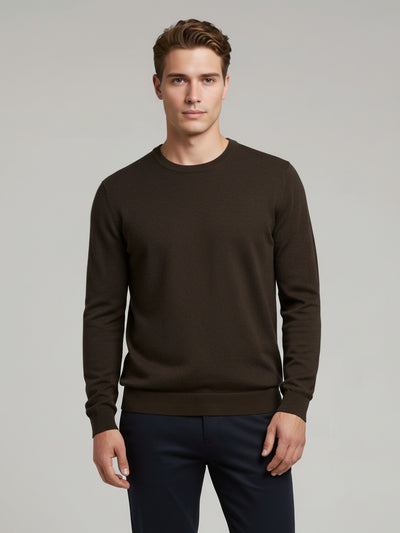 Celio Men Brown Solid Regular Fit Cotton Sweaters
