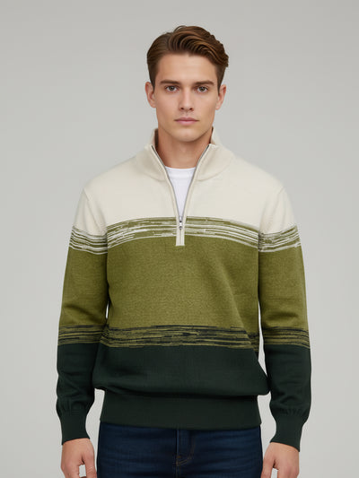 Celio* Men Olive Striped Regular Fit Cotton Sweaters