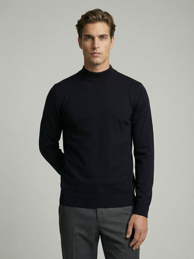 Celio Men Navy Blue Solid Regular Fit Cotton Sweaters