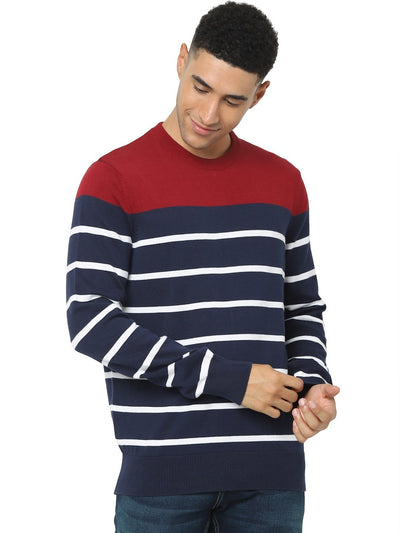 Celio* Cotton Men Striped Regular Fit Sweaters