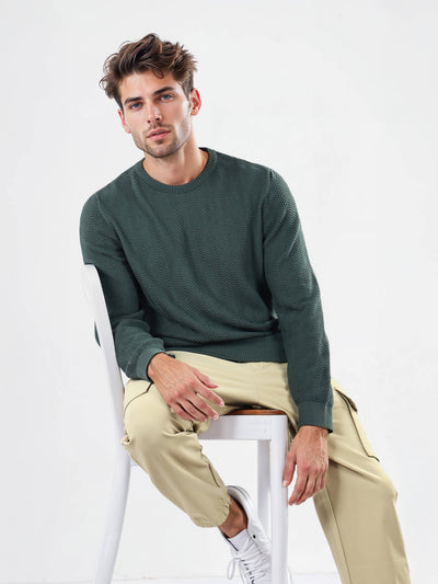 Celio* Green Men Regular Fit Cotton Solid Sweaters