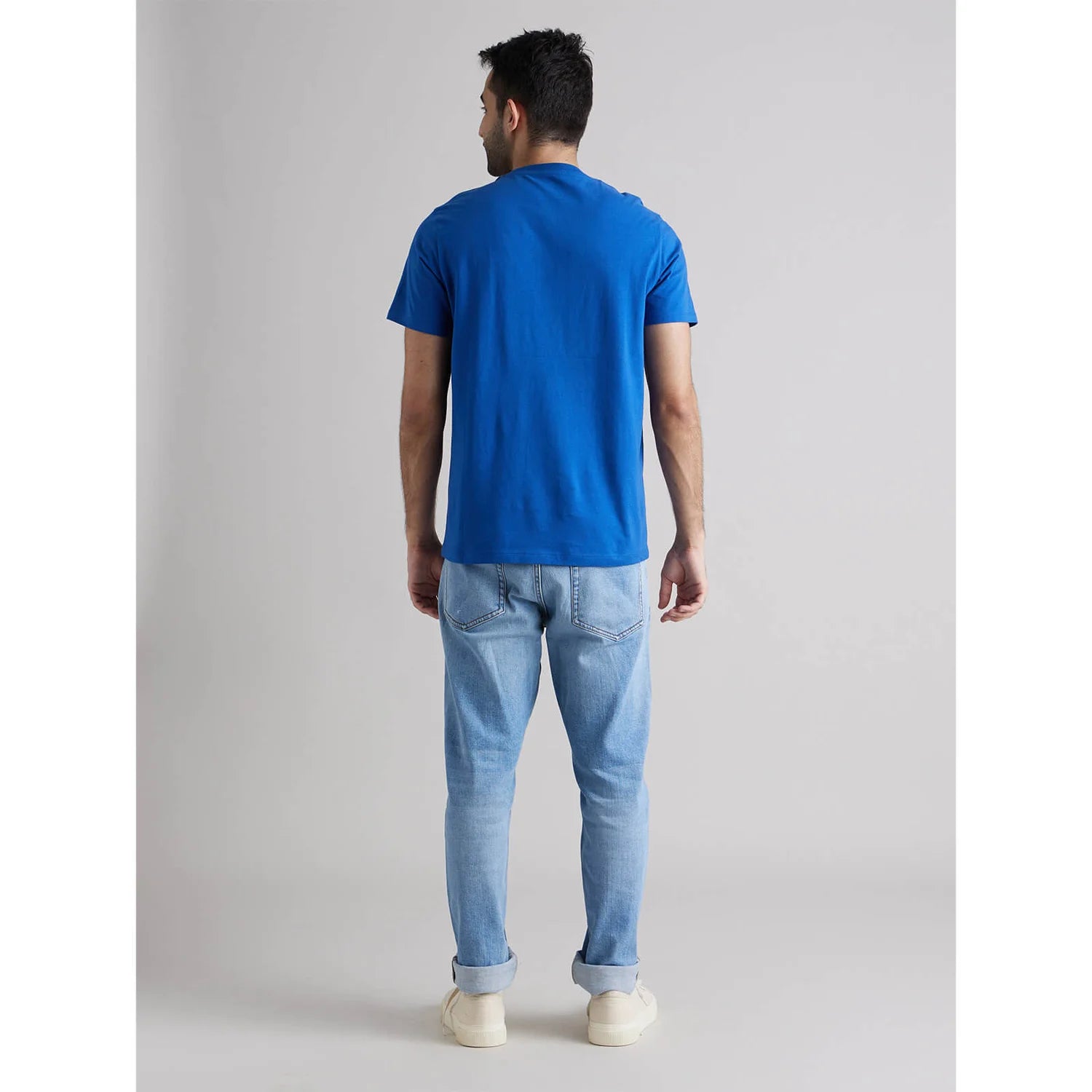 Celio* Solid Regular Fit Cotton Blue T-Shirt