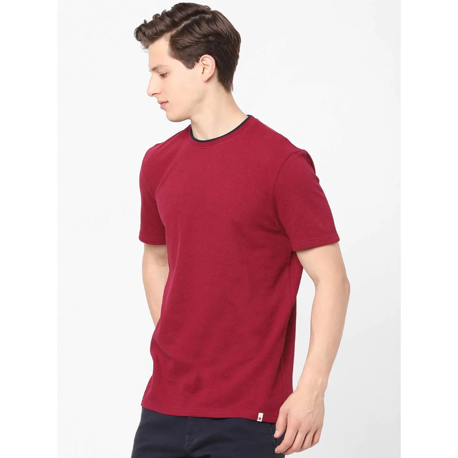Celio* Solid Regular Fit Cotton Maroon T-Shirt