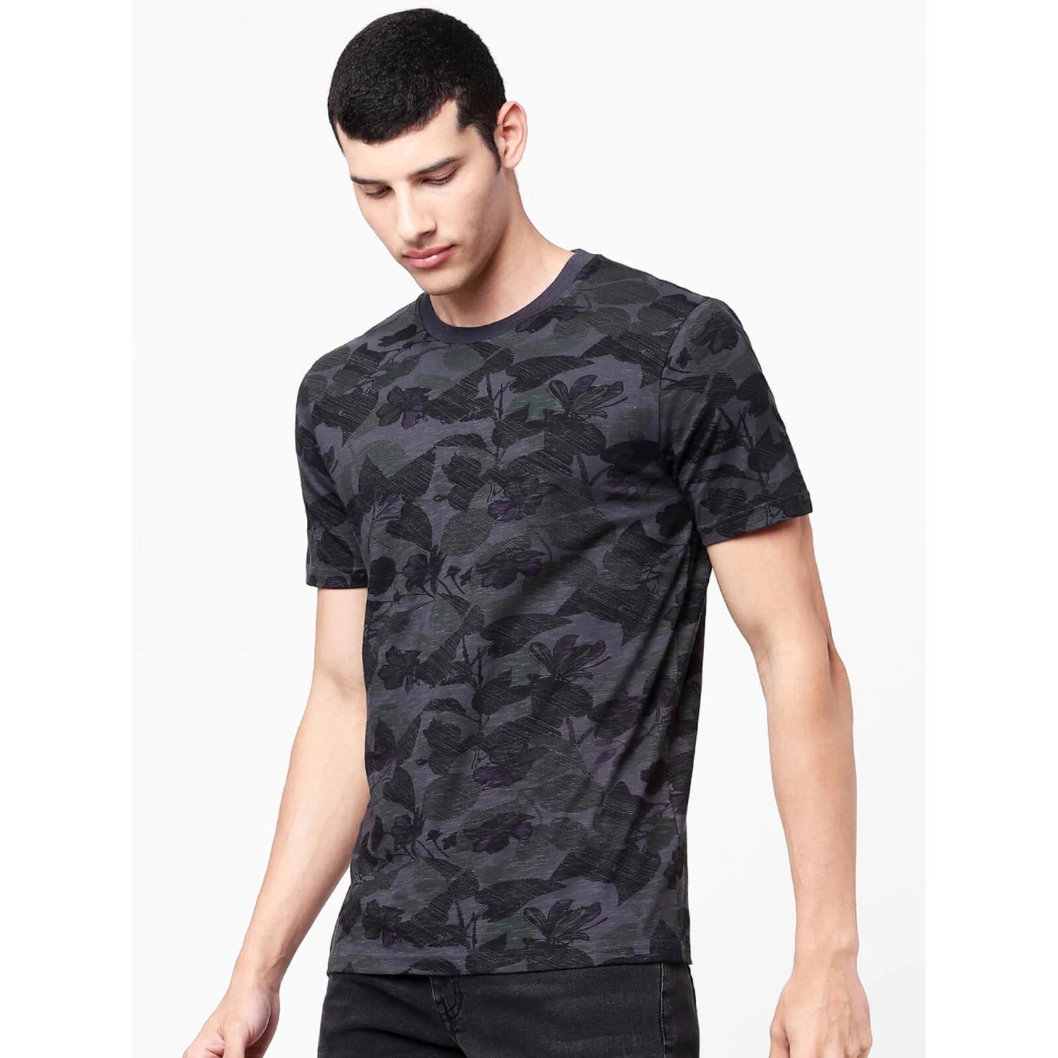 Celio Printed Regular Fit Knit Olive T-Shirt