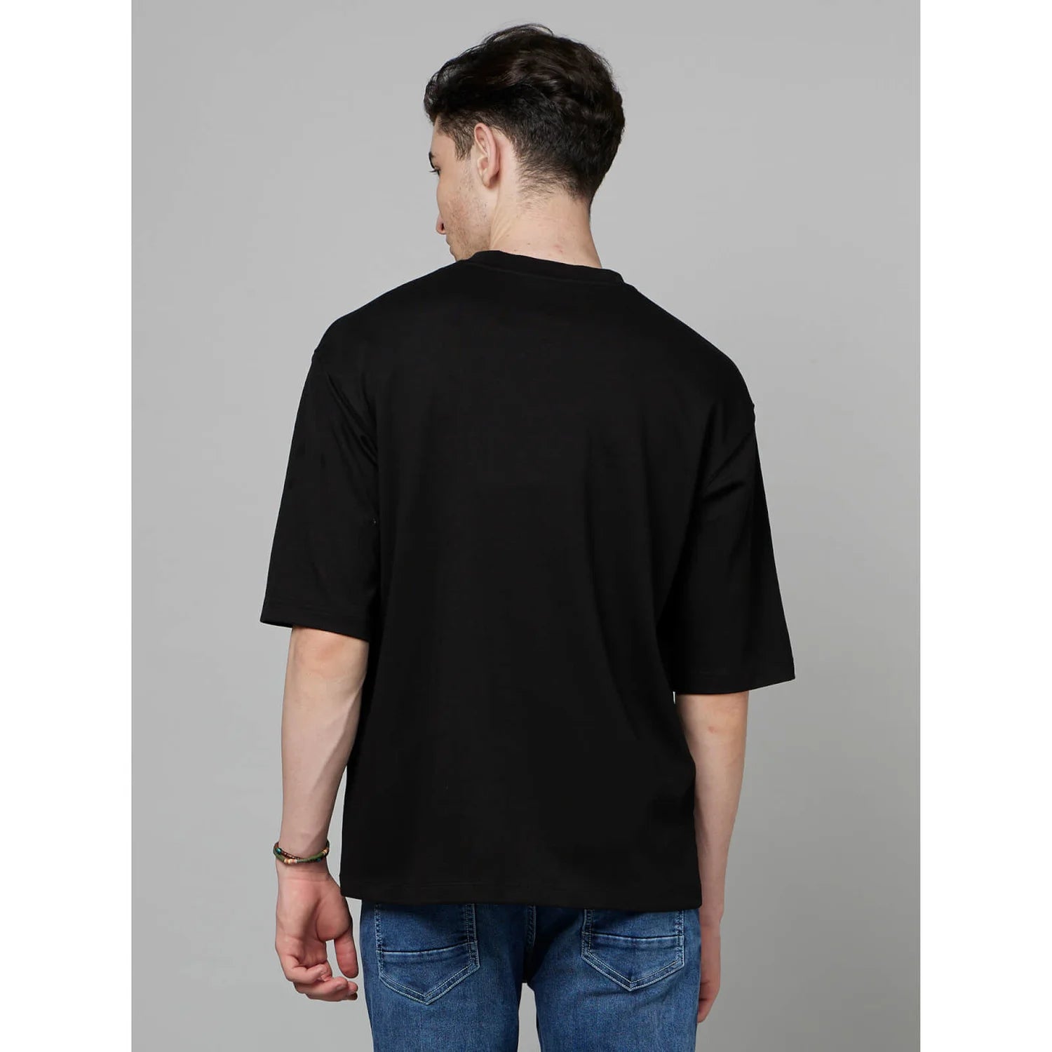 Celio Men Black Solid Boxy Fit Cotton-Blend T-Shirts