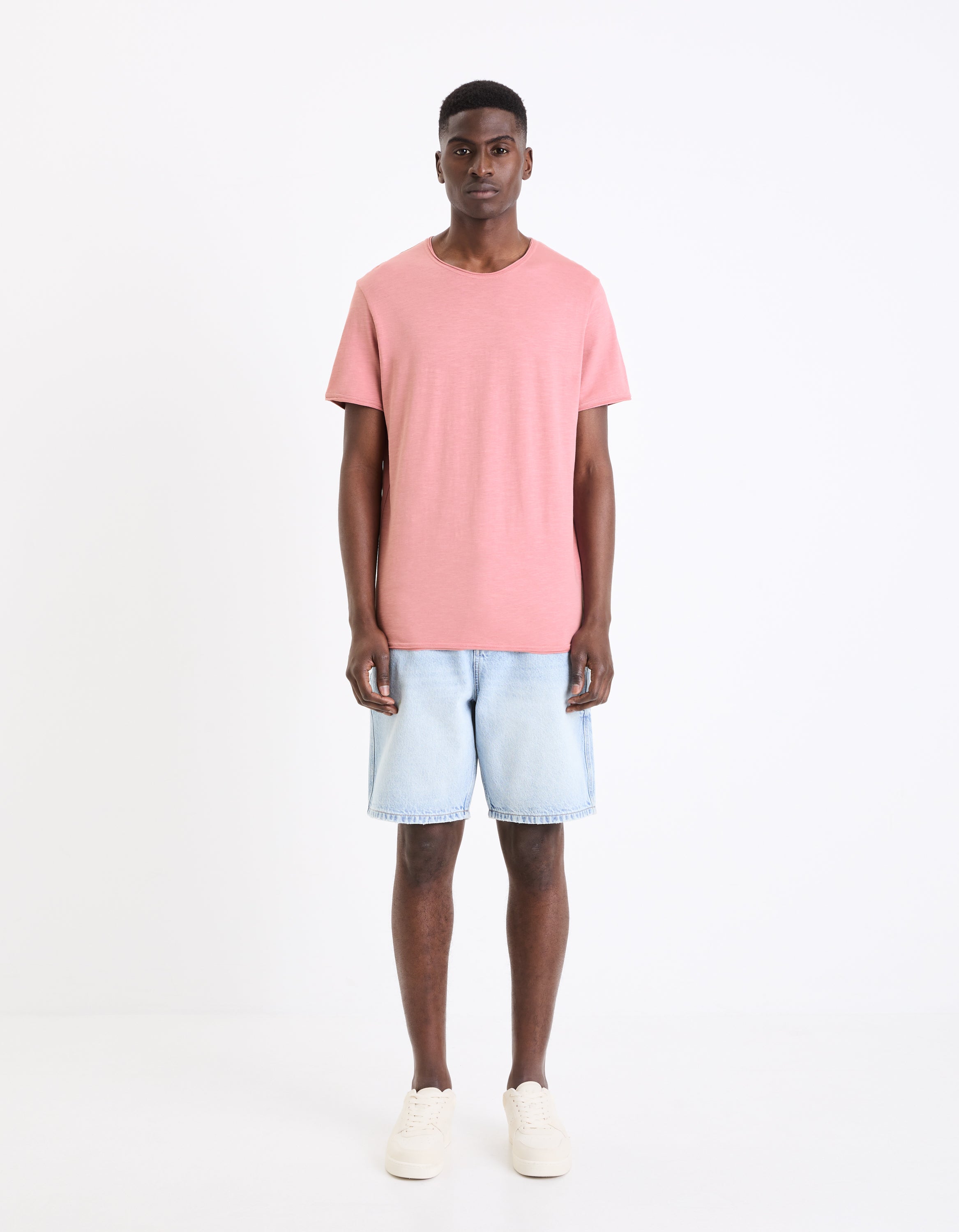 Celio* Solid Regular Fit Cotton Pink T-Shirt