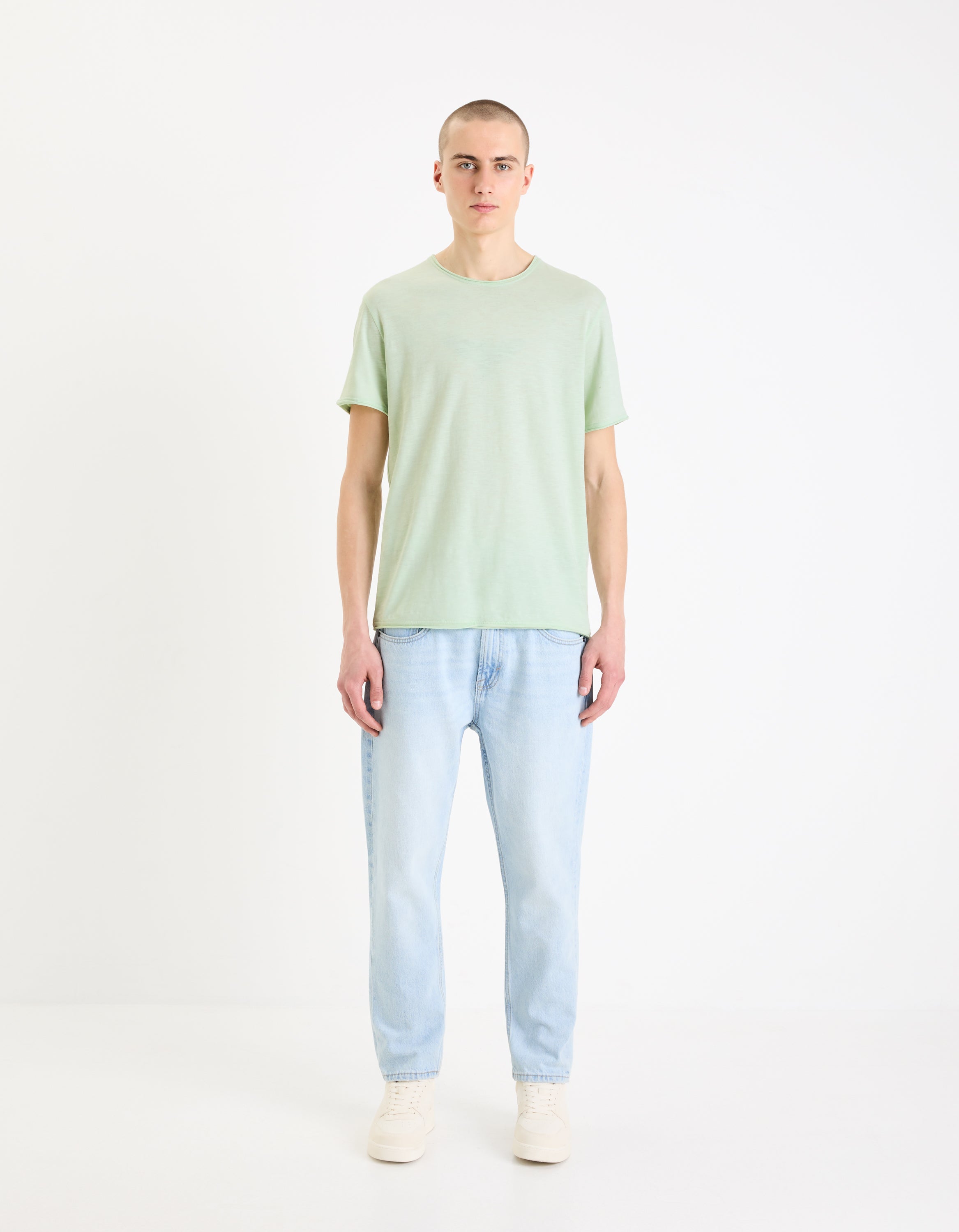 Celio* Solid Regular Fit Cotton Green T-Shirt