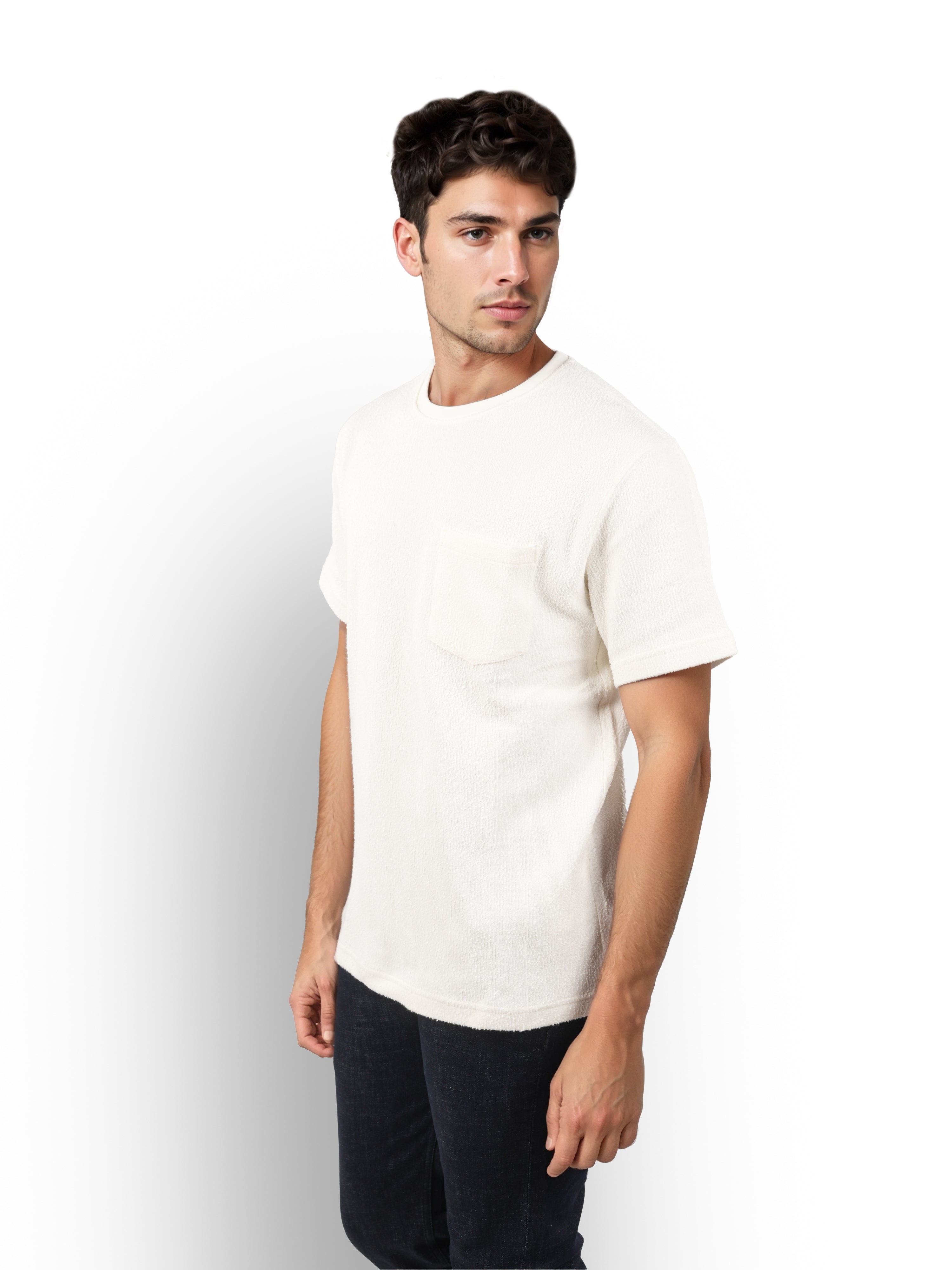 Celio* Solid Regular Fit Poly-Cotton Off White T-Shirt