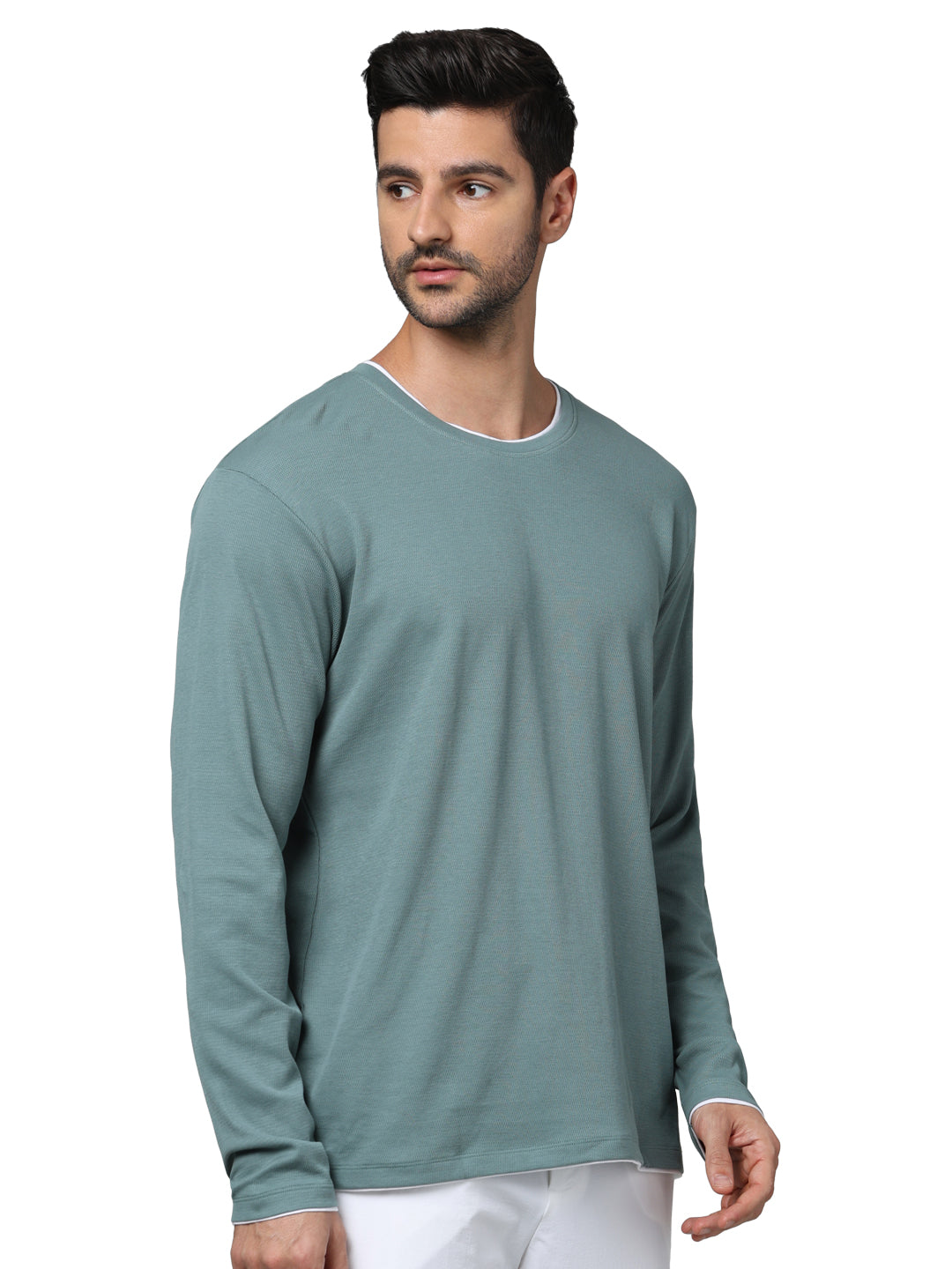 Celio* Men Green Solid Regular Fit Cotton Henley Tshirt