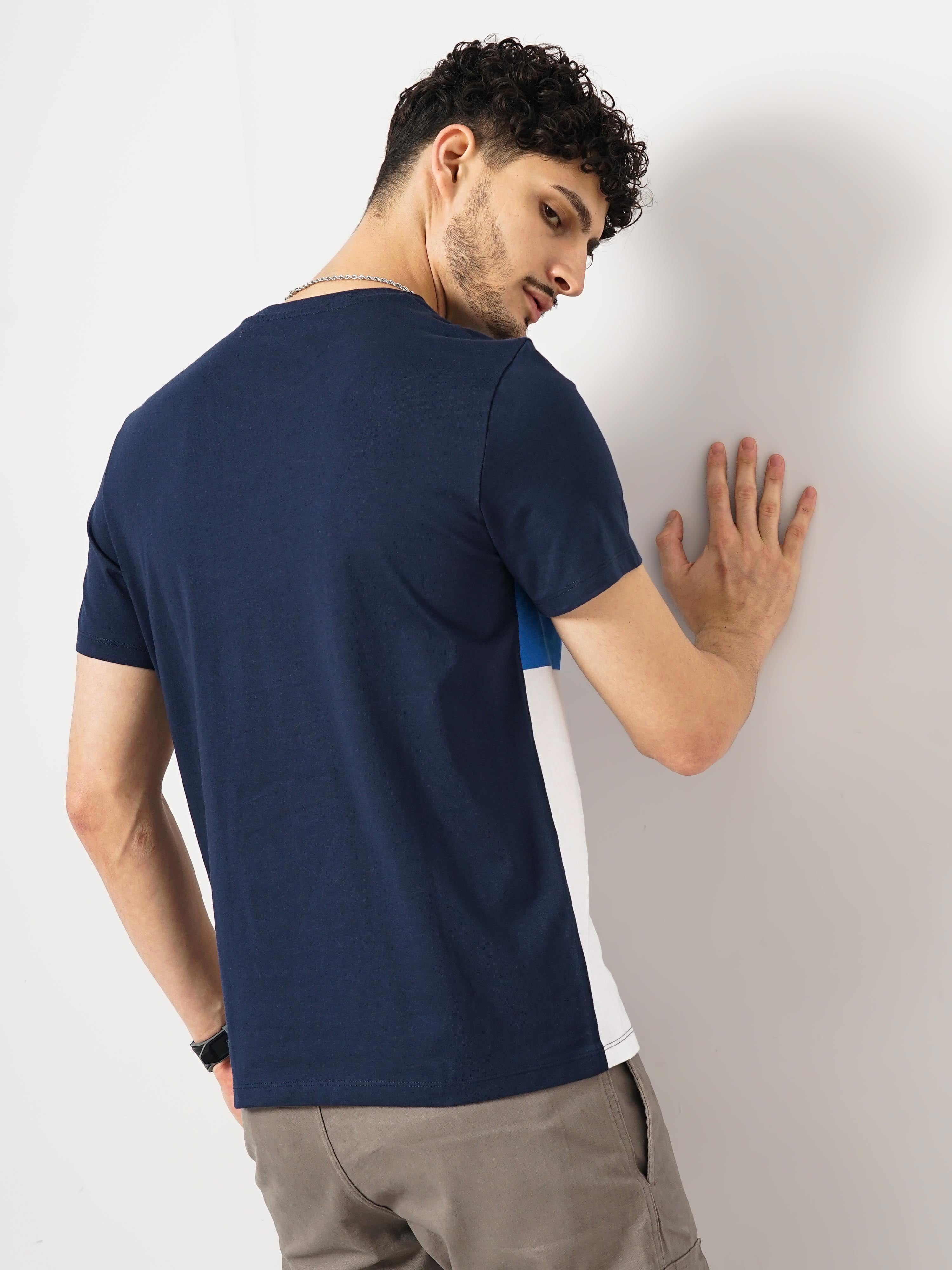Celio* Colourblock Regular Fit Cotton Navy Blue T-Shirt