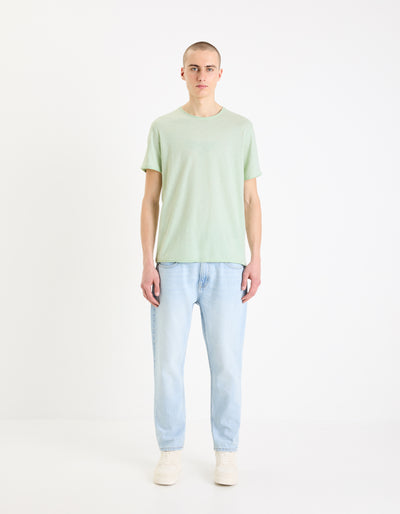 Celio* Solid Regular Fit Cotton Green T-Shirt
