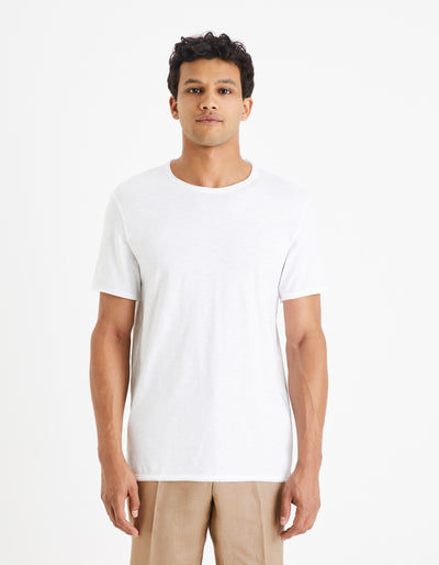 Celio* Men White Solid Regular Fit Cotton T-shirt