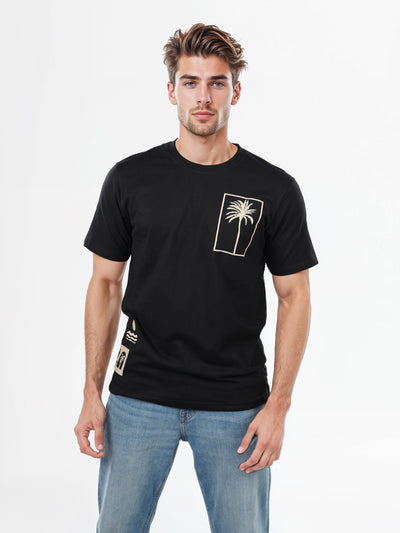 Celio* Embroidered Boxy Fit Cotton Black T-Shirts