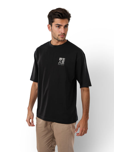 Celio* Printed Oversized Cotton Black T-Shirt