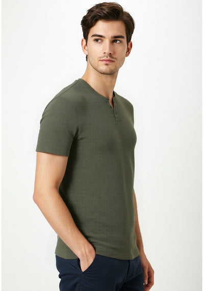 Celio* Men Olive Solid Regular Fit Cotton T-Shirt