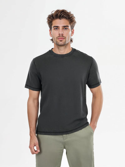 Celio* Solid Regular Fit Cotton-Blend Black T-Shirt