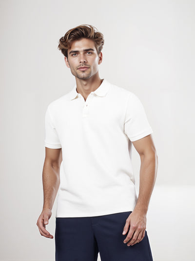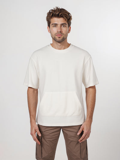Celio* Solid Regular Fit Cotton Off White T-Shirt