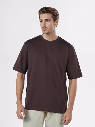Celio* Men Brown Solid Oversized Cotton-Blend T-Shirts