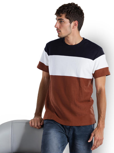 Celio* Colourblock Regular Fit Cotton Multi T-Shirt