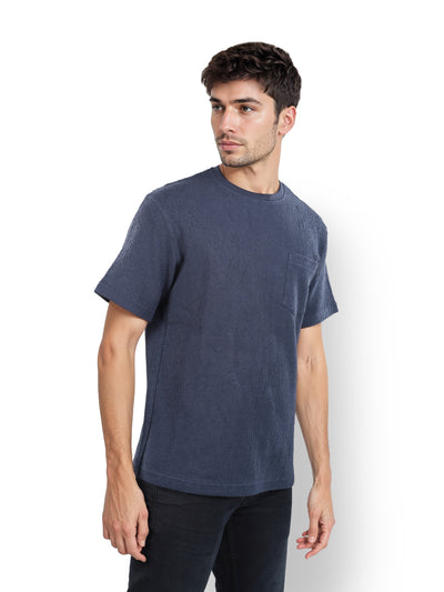 Celio* Solid Boxy Fit Cotton Navy Blue T-Shirt