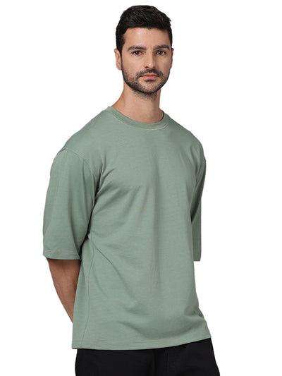 Celio* Solid Boxy Fit Cotton Green T-Shirt