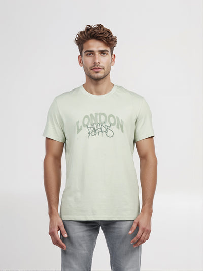 Celio* Men Green Printed Straight Fit Cotton T-shirt