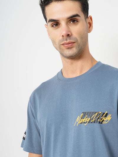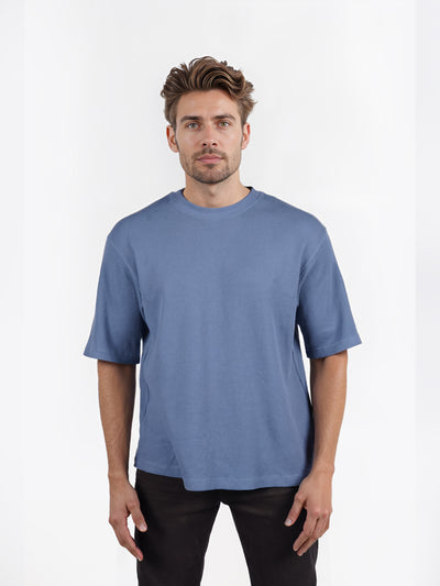 Celio* Solid Oversized Cotton Blue T-Shirt