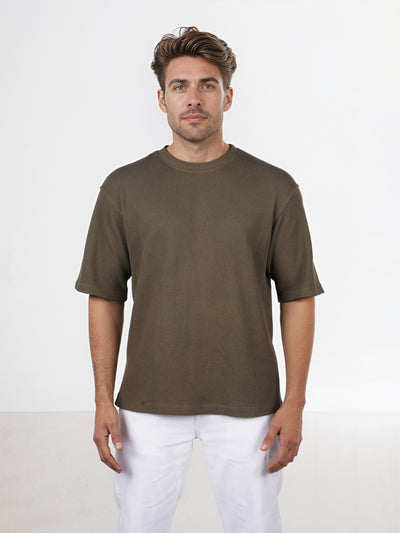 Celio* Solid Oversized Cotton Olive T-Shirt