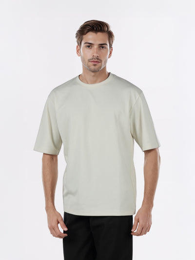 Celio* Men Cream Solid Oversized Cotton-Blend T-Shirts