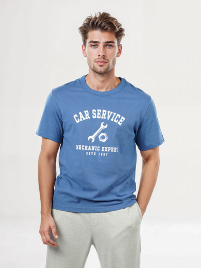 Celio* One - Piece Regular Fit Cotton Blue T-Shirt