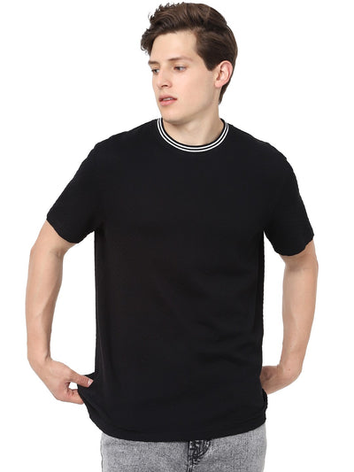 Celio* Solid Regular Fit Cotton-Blend Black T-Shirt