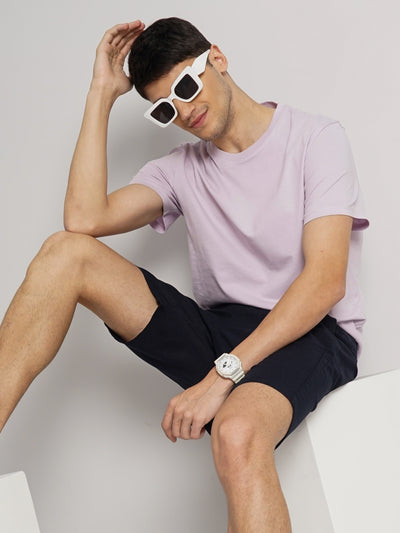 Celio Men Mauve Solid Straight Fit Cotton T-Shirts