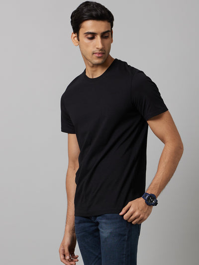 Celio Men Black Solid Straight Fit Cotton T-Shirts