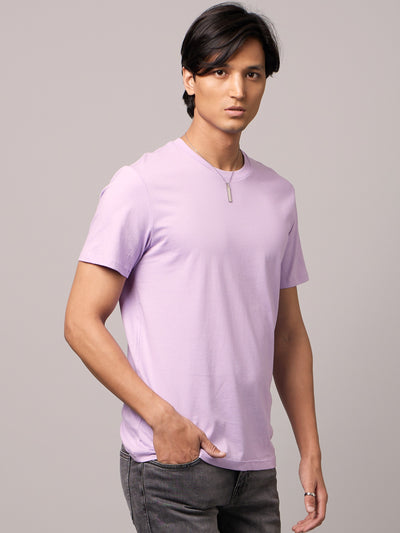 Celio* Solid Straight Fit Cotton Purple T-Shirt