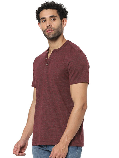 Celio Men Burgundy Solid Straight Fit Cotton T-Shirts