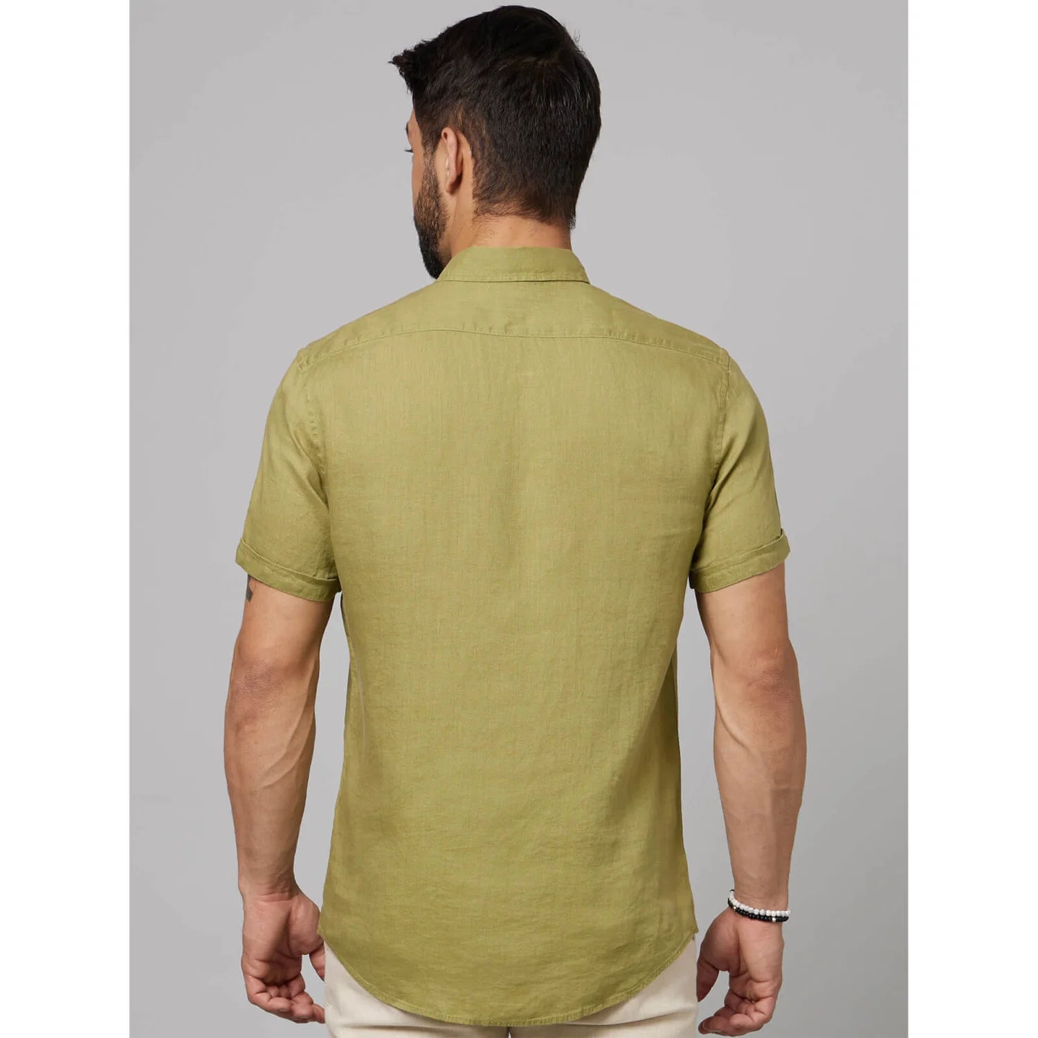 Celio* Solid Regular Fit Cotton Olive Shirt