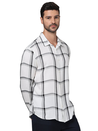 Celio* Checked Regular Fit Viscose Beige Shirt