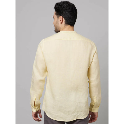 Celio* Solid Regular Fit Linen Yellow Shirt