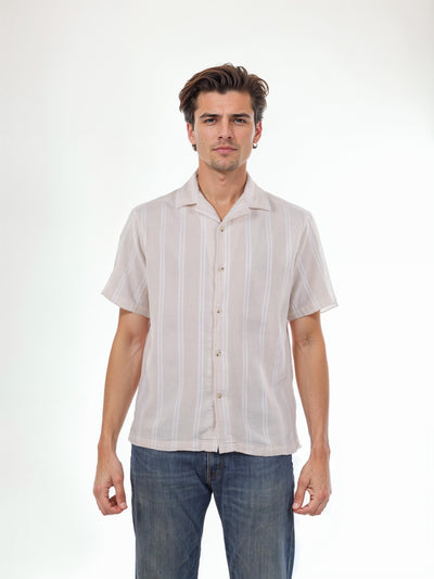 Celio* Striped Regular Fit Cotton Beige Shirt