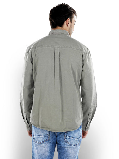 Celio* Solid Regular Fit Cotton Olive Shirts