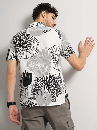 Celio* Printed Regular Fit Viscose Off White Shirt