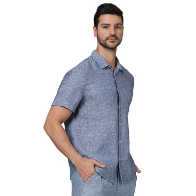 Celio* Men Blue Solid Regular Fit Linen Shirts
