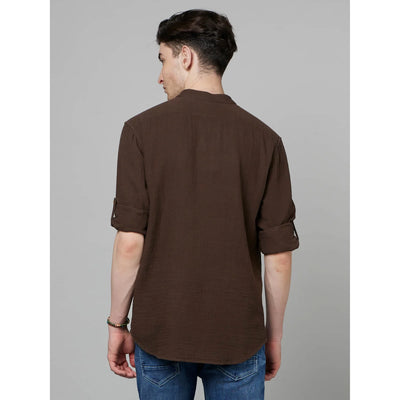 Celio* Men Brown Striped Regular Fit Cotton Shirts