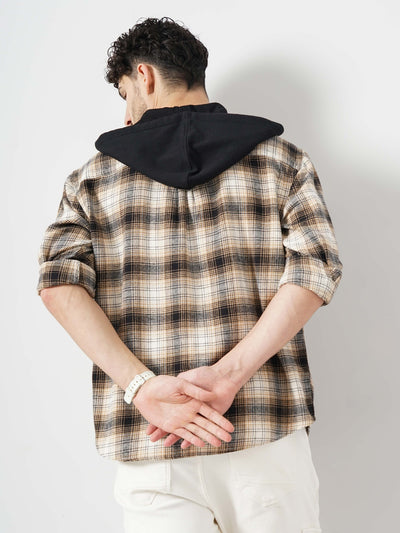 Celio* Checked Regular Fit Cotton Beige Shirt