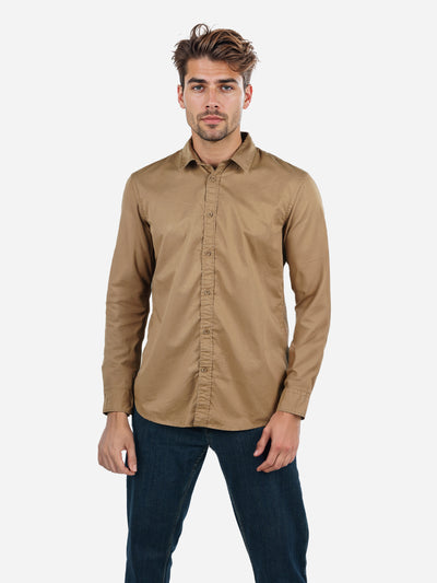 Celio* Solid Regular Fit Cotton Beige Shirt