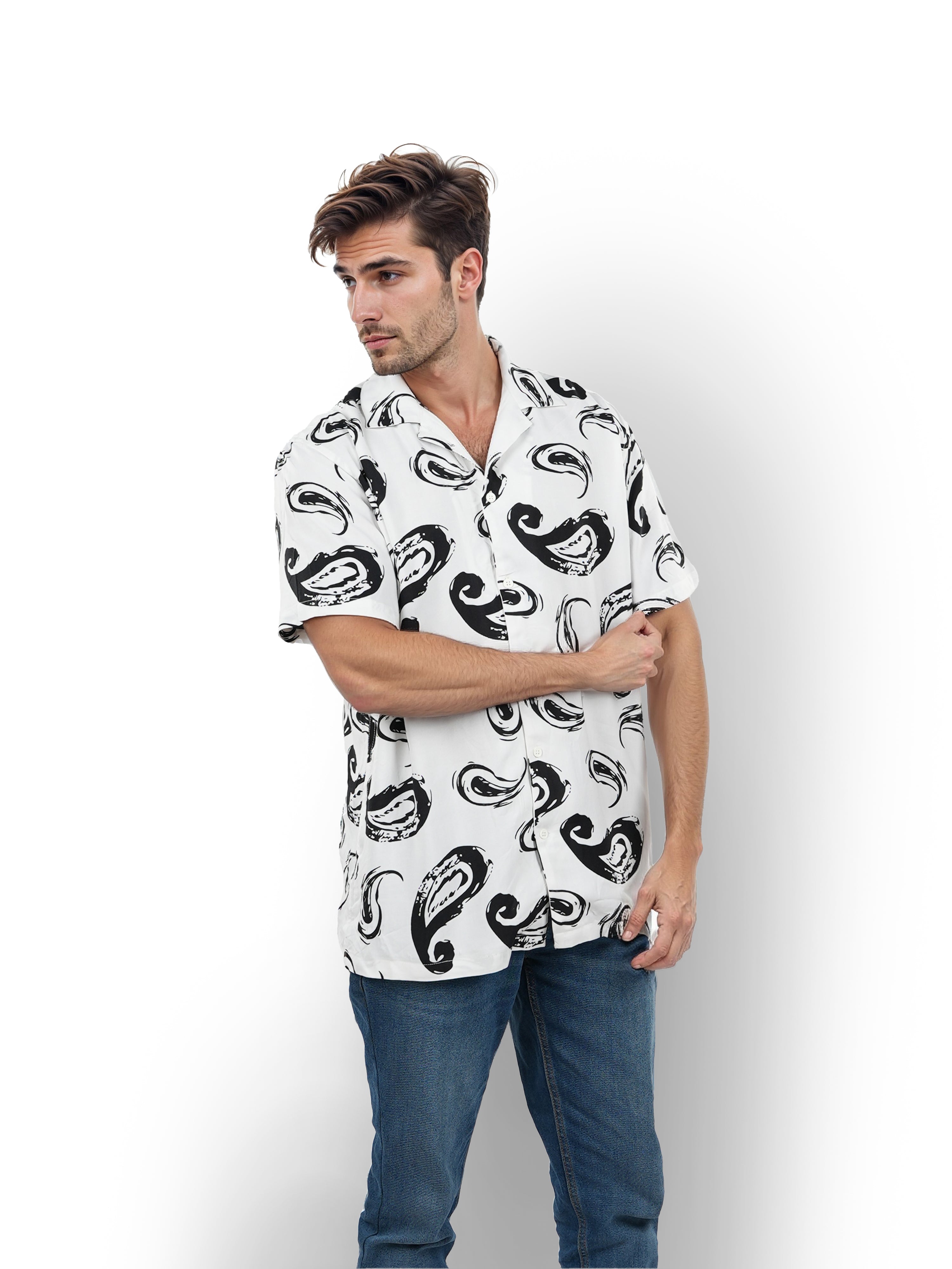 Celio* Printed Regular Fit Viscose White Shirt