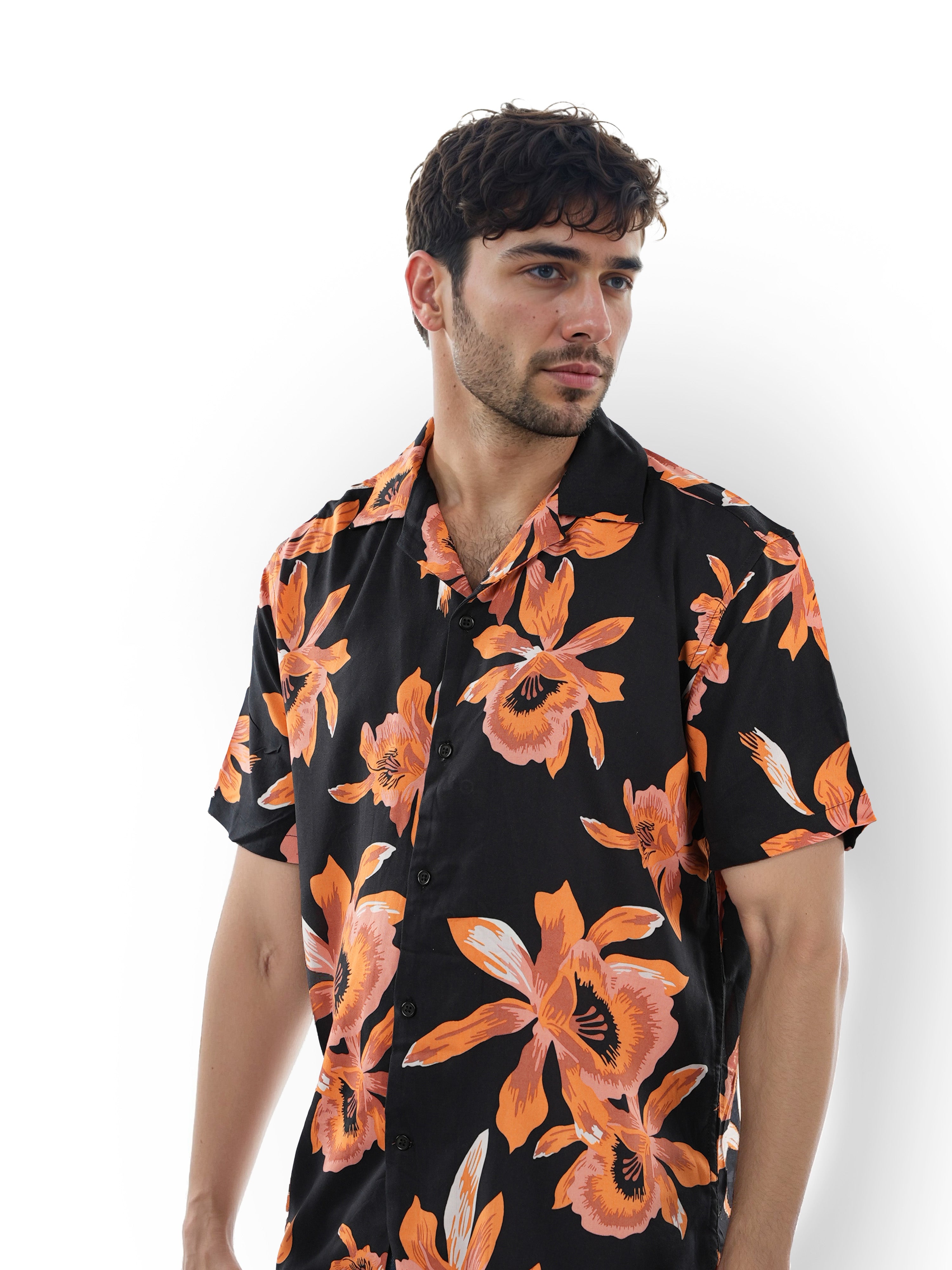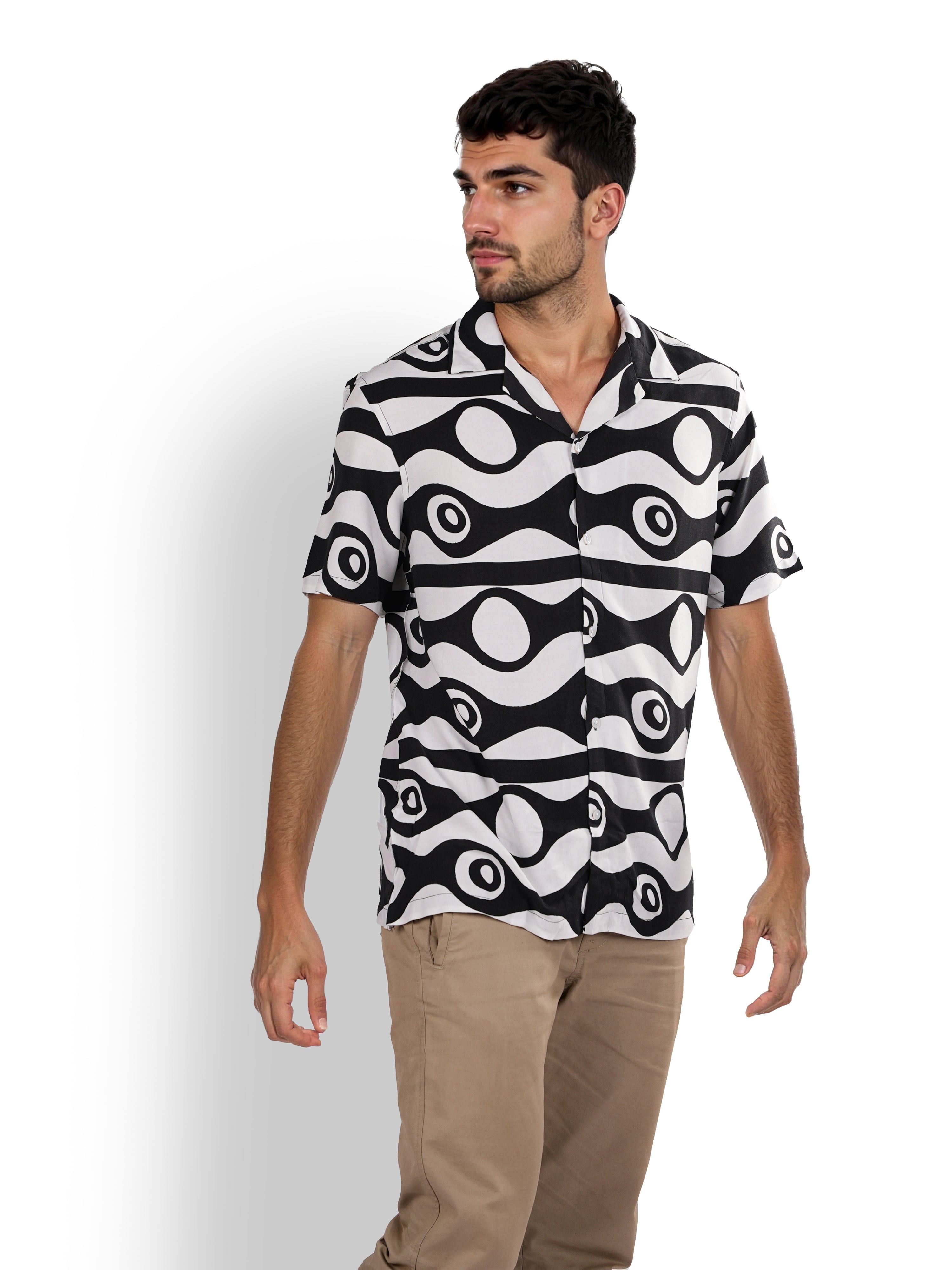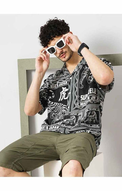 Celio* Printed Boxy Fit Viscose Black Shirt