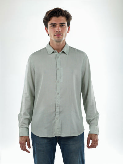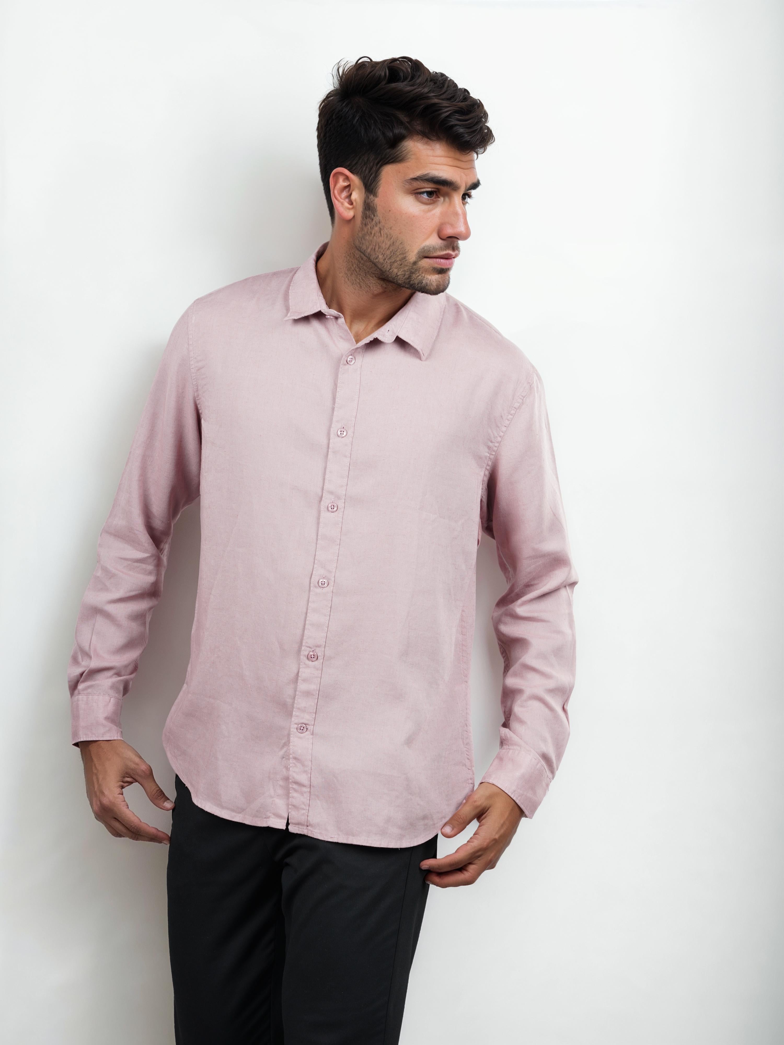 Celio* Solid Regular Fit Linen Mauve Shirt