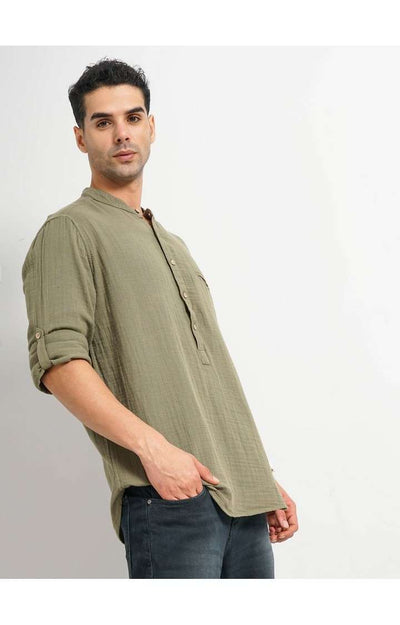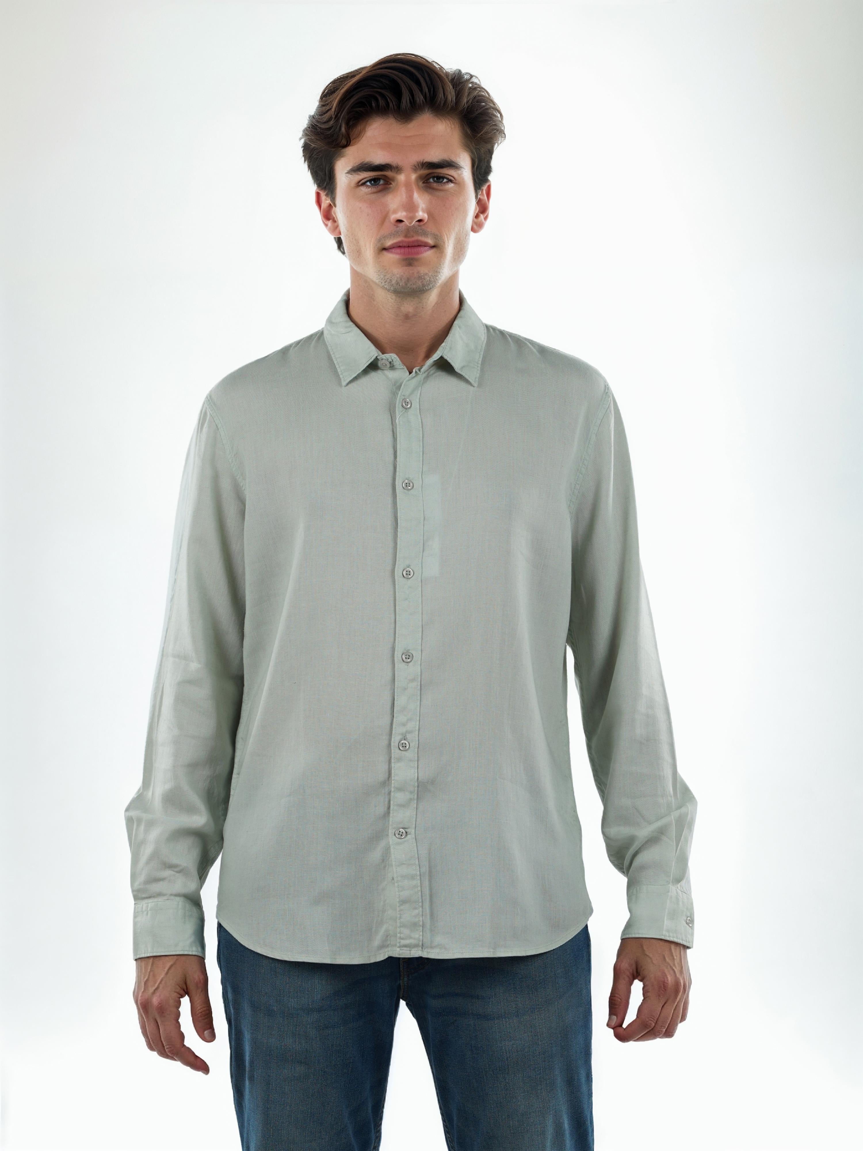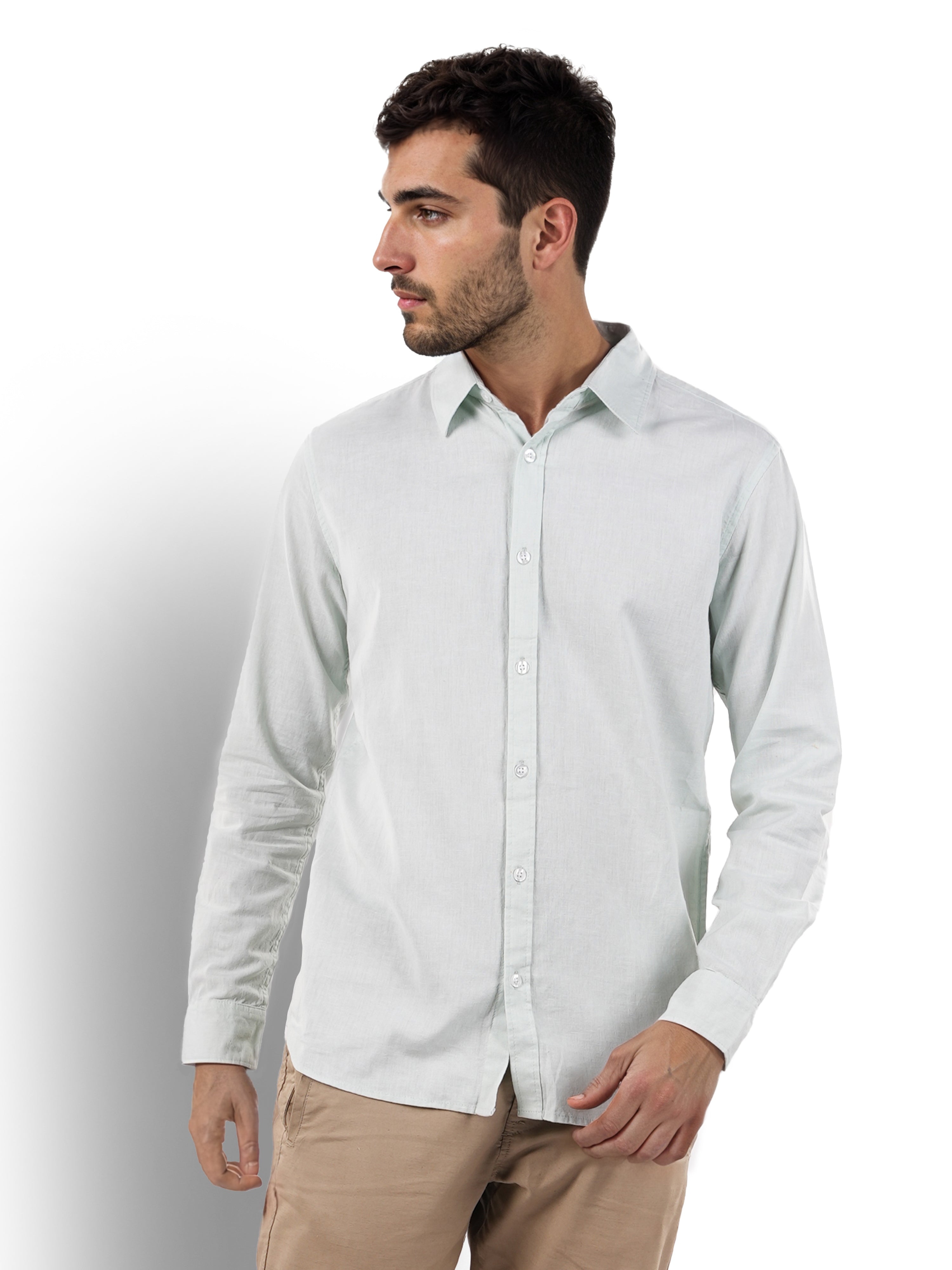 Celio* Solid Regular Fit Linen Green Shirt