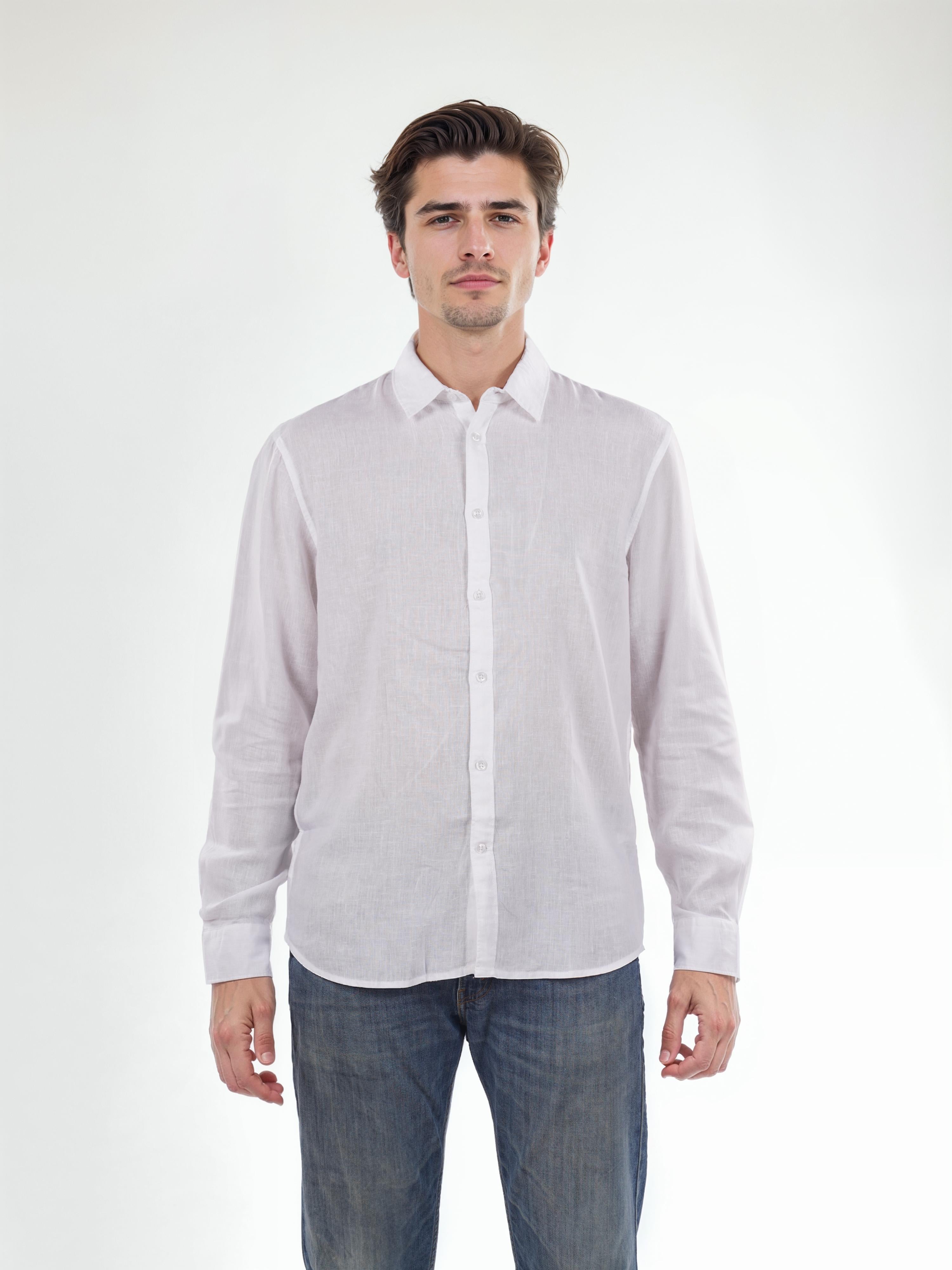 Celio* Solid Regular Fit Linen White Shirt